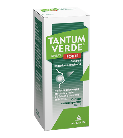Tantum Verde Spray Forte sa používa na úľavu od bolestivých príznakov podráždenia a zápalu spojeného s bolesťou hrdla.